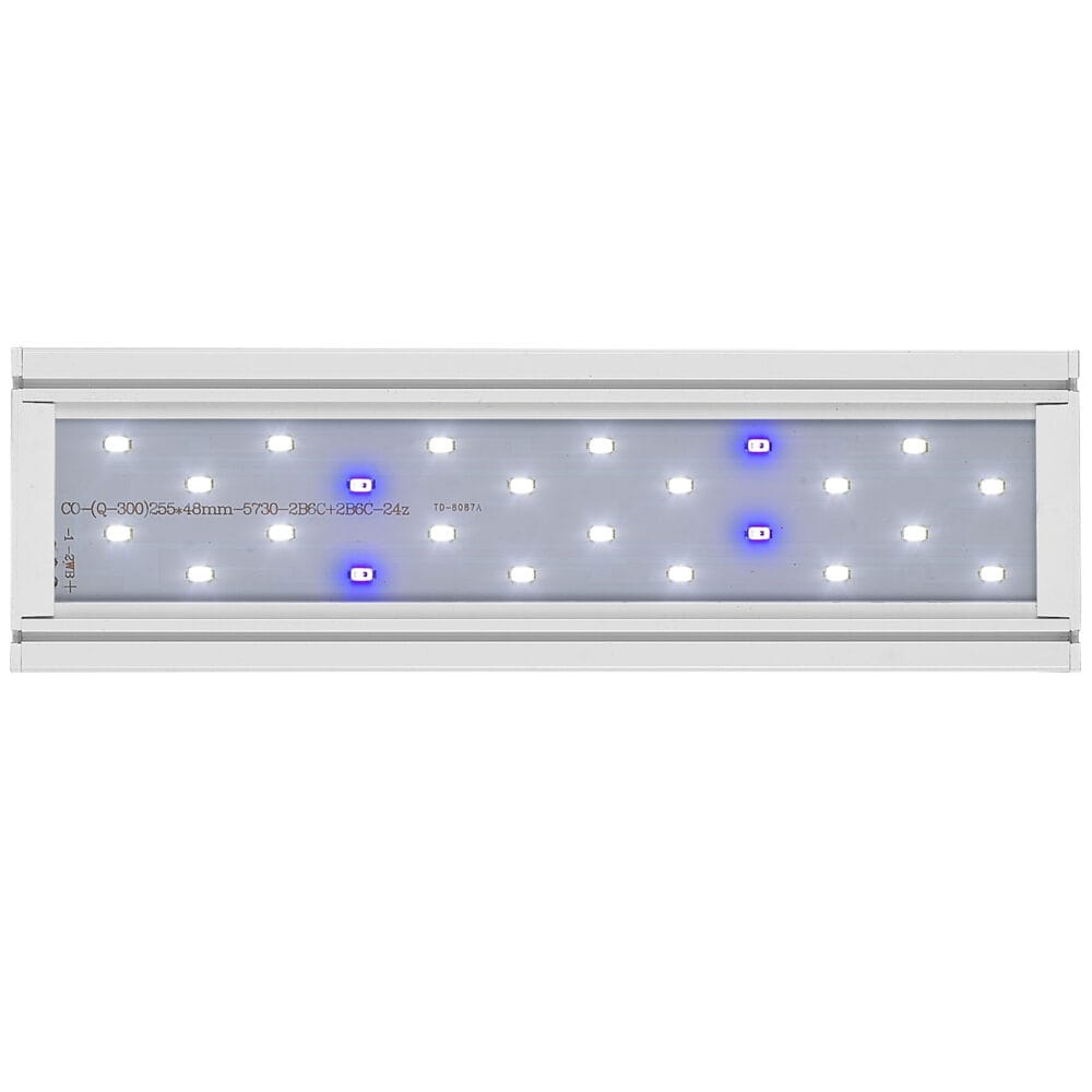- RGB+W (rojo, verde, azul y blanco): realza al máximo la coloración de peces y plantas, ideal para acuarios de aquascaping.