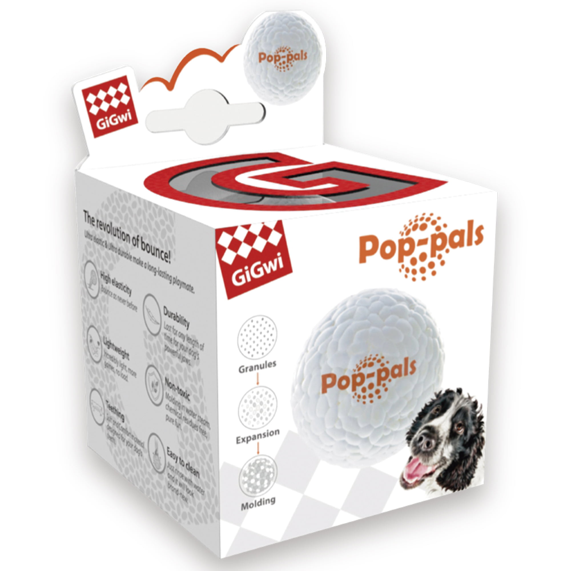 Divertidas pelotas Pop-pals de GiGwi, fabricada con innovadores materiales, Infinergy Ⓡ Pop-Corn, usado en calzados deportivos premium. Esta divertida pelota flota en el agua, apta para jugar en cualquier lugar. Súper ligera y saltarina, tan elástica como el caucho pero mucho más liviana. Sus materiales premium le confieren una durabilidad enorme, no se deforma ni se rasga incluso tras un test de fuerza de 1000 mordidas, perfecta para perros que tengan fuerte mordida y una gran energía ¡no podrán parar de jugar!…- Pelota 7cm